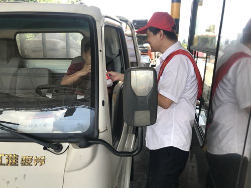 天氣雖炎熱,服務(wù)不“打烊”。 在活動(dòng)中,志愿者們不顧自身大汗淋漓,仍身披橫幅,頭戴小紅帽,面帶微笑向途經(jīng)收費(fèi)所的司機(jī)們遞上一杯杯綠豆湯、一瓶瓶礦泉水。同時(shí),大家還不忘宣傳行車(chē)安全注意事項(xiàng),提醒司機(jī)朋友在高溫酷暑時(shí)節(jié)多注意行車(chē)安全。