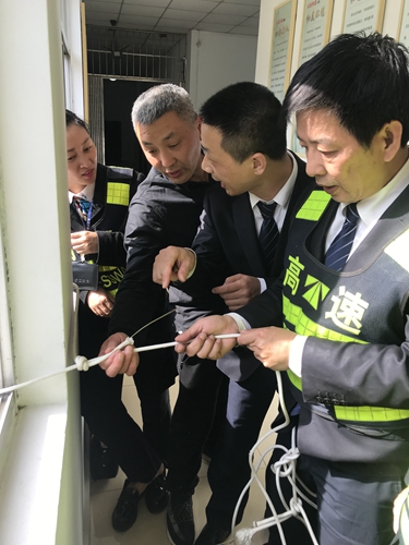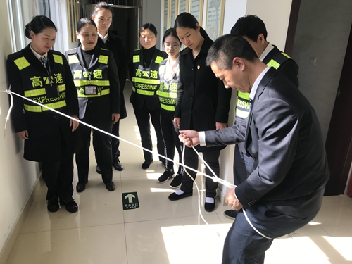 圖為演練現(xiàn)場 隨著所長孫明偉提問式的開場白,近日,臨海南收費(fèi)所以班組為單位,分四天集中開展全員逃生繩演練活動。全所員工積極參與、親身體驗,活動達(dá)到預(yù)期效果。 整個演練過程中,培訓(xùn)人員詳細(xì)講解了打繩結(jié)的方法與注意要點(diǎn),現(xiàn)場氣氛踴躍。通過開展此次活動,本所員工不僅掌握了逃生繩的使用方法,提高了高層逃生自救能力,而且進(jìn)一步提高了面對突發(fā)火情的應(yīng)對能力,增強(qiáng)了“防火防災(zāi)”的安全意識。 陳瑩