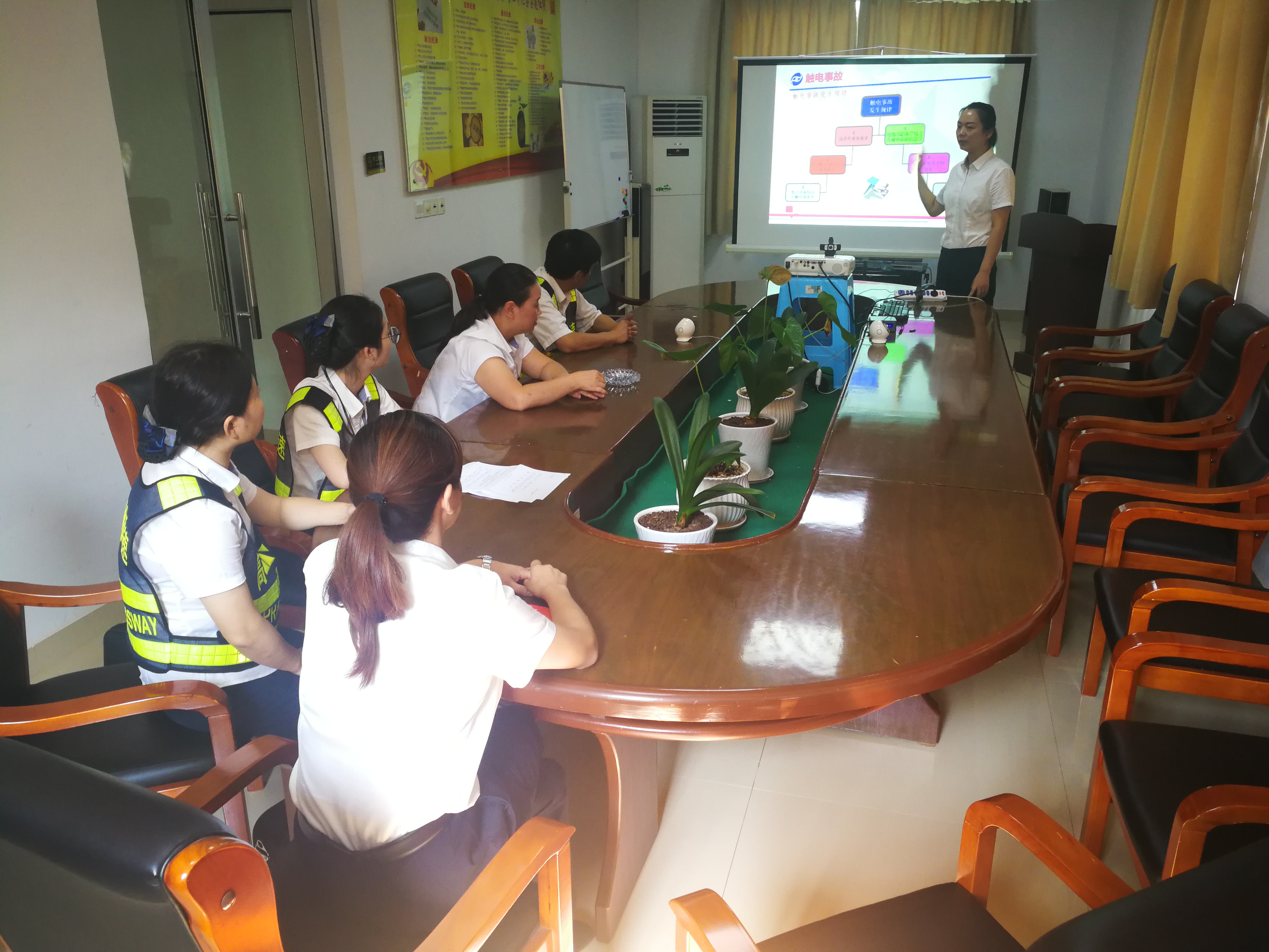圖為培訓(xùn)現(xiàn)場 夏季是事故多發(fā)季,高溫天氣多變,增加了環(huán)境的不確定因素,給生產(chǎn)帶來了一定的安全隱患。本次臨海南收費所主要從夏季多發(fā)的觸電、雷電、中毒和中暑等方面來講解安全生產(chǎn)。