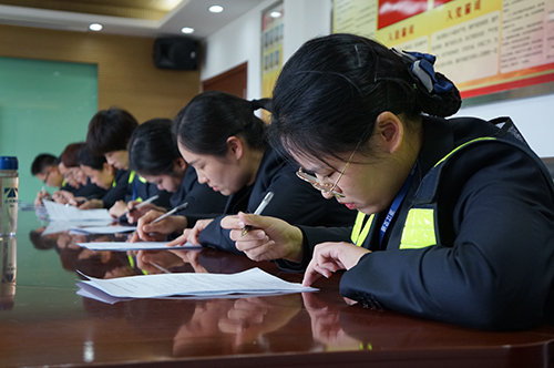 圖為筆試現(xiàn)場(chǎng) 比賽分筆試和現(xiàn)場(chǎng)問(wèn)答兩部分,內(nèi)容涉及收費(fèi)政策、業(yè)務(wù)知識(shí)、特情處理、內(nèi)控管理制度。筆試試題分成6份,參考人員隨機(jī)選題,各班組分批閉卷測(cè)試,最后取班組平均分進(jìn)行排名?,F(xiàn)場(chǎng)問(wèn)答由必答題、搶答題、場(chǎng)外題等多個(gè)部分組成,采用累積計(jì)分、搶錯(cuò)答錯(cuò)扣分方式進(jìn)行。各組以班組為單位每班派出3名選手,分成四組,其他班組人員則參加場(chǎng)外搶答。 “開(kāi)具高速公路電子發(fā)票可下載“票根”APP或登錄票根網(wǎng)的網(wǎng)址是?” “車(chē)道移動(dòng)支付掃碼設(shè)備連接異常,導(dǎo)致無(wú)法支付,需要做哪些?”