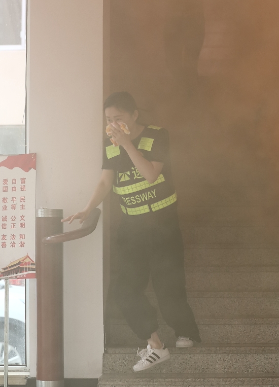 圖為火災(zāi)逃生演練現(xiàn)場 講座結(jié)束后,該所隨即開展火災(zāi)逃生演練。員工發(fā)現(xiàn)“火情”后立即撥打報(bào)警電話,參加演練人員聽到警報(bào)聲后,迅速拿起打濕的毛巾捂住口鼻,按照正確逃生動作要領(lǐng),從樓上彎腰低姿扶墻往樓下跑,大家有序疏散至安全地帶。 此次消防安全培訓(xùn),提高了全員的消防安全意識,提升了火災(zāi)等突發(fā)事故的應(yīng)急處理能力。 楊雅芬