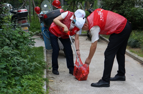 下午2時(shí),該所一行6人在所長(zhǎng)王小勇的帶領(lǐng)下抵達(dá)九峰社區(qū),在社區(qū)負(fù)責(zé)人的介紹中了解了社區(qū)的基本情況,并開展環(huán)境衛(wèi)生清理工作。志愿者們身著志愿紅背心,一手拿垃圾夾一手提垃圾袋,在社區(qū)道路、綠化帶里認(rèn)真撿拾垃圾和煙頭。社區(qū)工作人員與志愿者們親切攀談,天氣雖然悶熱,但大家的熱情絲毫不減。活動(dòng)結(jié)束時(shí),雙方探討了結(jié)對(duì)共建聯(lián)絡(luò)機(jī)制,以確保共建活動(dòng)常態(tài)化開展。