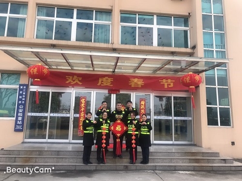 圖為布置好的辦公樓現(xiàn)場 下午,大家對管理房辦公樓道的蜘蛛網(wǎng)進(jìn)行了清理,對大門口進(jìn)行布置:掛起燈籠、貼上對聯(lián)、拉好橫幅和彩旗??紤]到春節(jié)期間保潔員放假,生活垃圾較以往會有所增加,特在各角落多增放了幾只垃圾桶。 負(fù)責(zé)掃塵的同事認(rèn)真對待,干勁十足。在大家的共同努力下,經(jīng)過掃塵后的所面貌煥然一新,節(jié)日的氛圍較為濃厚。該所負(fù)責(zé)人要求大家尊重今天的勞動果實(shí),春節(jié)期間繼續(xù)做好保潔工作。最后,大家即興在大門口合了影,并送上新年的祝福,擁抱充滿希望的2019年! 夏蓮萍
