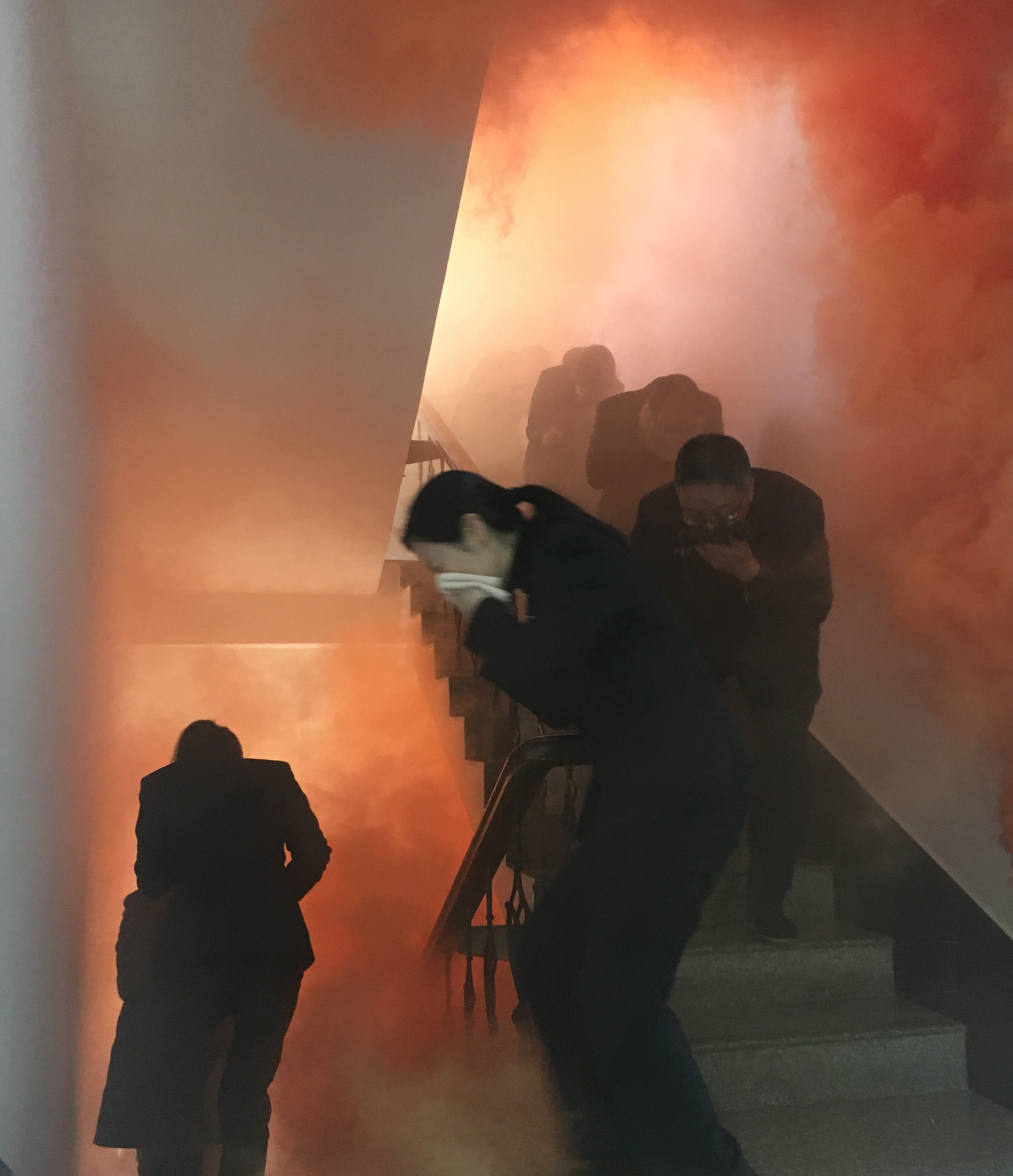 圖為樓道逃生演練 在樓道逃生演練中,大量煙霧彌漫,員工們熟練掌握逃生自救的要領(lǐng):個(gè)個(gè)用濕毛巾捂住口鼻,彎腰、沿著樓道有序快速往下逃離。 大家在突發(fā)事件面前臨危不懼、配合默契,保證了其它車輛的有序通行。在面對(duì)突發(fā)火災(zāi),也能做到有序、快速撤離。通過(guò)演練,各崗位人員不僅增強(qiáng)了安全意識(shí),也提高了對(duì)應(yīng)急預(yù)案的熟悉程度和面對(duì)突發(fā)事件的反應(yīng)、處置和自救能力。 夏蓮萍
