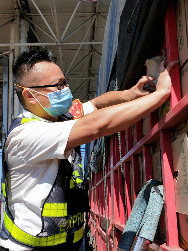 檢查綠農(nóng)車,遇到攀爬驗貨時,車輛欄桿因高溫炙烤至少在四五十度以上,臺州南收費所班長周冬子笑著說:“現(xiàn)在的車欄桿都‘辣手’了,腳底板也像踩了‘風火輪’。” 話音還未落,只見他蹭蹭幾下,已然爬上貨車,一邊檢查貨物一邊用袖子蹭掉臉上豆大的汗珠,被曬得黝黑發(fā)紅的皮膚在烈日下格外醒目。綠農(nóng)車開走后,他顧不上滿身汗水,拿起了掃把開始打掃灑落在車道上的綠農(nóng)產(chǎn)品。因為他知道,這些灑落的農(nóng)產(chǎn)品,如不及時清理,在太陽曝曬后將會更加刺鼻,影響收費站的形象。 熱浪滾滾,卷不走收費員們工作的熱情;夏日炎炎,燃不盡收費員們堅守的意志。他們用執(zhí)著在高溫下書寫愛崗敬業(yè),用責任和擔當保障著高速的平安暢通。 項丹穎