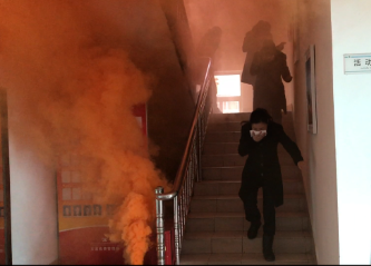 圖為逃生現(xiàn)場 在課堂上,陳教員通過近期火災事故案例分析,生動地講解了遇到突發(fā)性火災事故時的應急處理措施和如何做好高樓逃生自防自救及車輛的防火常識及如何應對車輛自燃和常見消防器材識別、使用及保養(yǎng)維護等消防安全知識。并結合單位實際情況,講述了收費所可能會遇到的幾種火災事故及應急措施。 隨后,溫嶺西收費所組織全體員工模擬親身體驗火災逃生演練。根據(jù)安排,以所長王小勇為組長,各所助、班長為成員的緊急疏散應急領導小組成立,明確逃生線路以及集合地點等演練內容。一切準備妥當后,員工分布在收費所管理房各處,模擬日常辦公。隨著煙霧彈的蔓延,逃生演練正式開始。首先由發(fā)現(xiàn)火情者撥打模擬火災報警電話,報告起火具體位置與火勢的大小,請求支援,同時報告所長,通知人員離開現(xiàn)場。參演人員立即用濕毛巾捂住口鼻,彎下身子盡量避開濃煙,進行緊急撤離。只見疏散引導員葉俊在三樓樓梯口指揮大家撤離,統(tǒng)計疏散人數(shù),清查本層各寢室、洗漱間后撤離;疏散引導員陳豐平在二樓樓梯口指揮人員撤離,統(tǒng)計疏散人數(shù),清查本層各辦公室、寢室、衛(wèi)生間后撤離;疏散引導員李寧在所大門指揮人員撤離,統(tǒng)計疏散人數(shù),清查本層會議室,寢室后撤離。撤離人員達到指定集合地點,由狄文琦清點核實人數(shù),匯總后向所長匯報情況。所長王小勇確認全體人員安全撤離后,對本次演練進行點評,并宣布逃生緊急疏散演練結束。 通過本次演練,大家紛紛表示明白了火災預防措施,了解了常用的消防設備,懂得更多基本消防常識,并學會撲救初期火災、組織人員疏散、火災逃生自救等知識和技能,為今后的生活和工作多了一份安全保障。 陳瑩