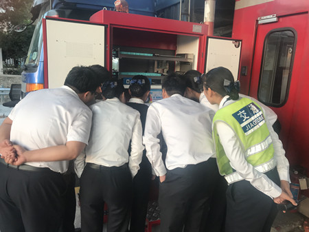 圖為工作人員在現(xiàn)場學(xué)習(xí)自動發(fā)卡機的操作功能