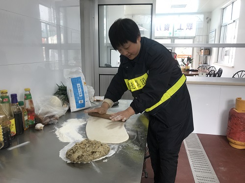圖為溫嶺西收費(fèi)所副所長也加入做飯隊(duì)伍