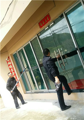 圖為執(zhí)勤隊員打掃設施設備