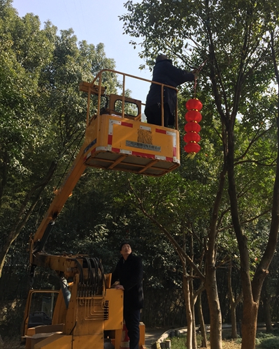 圖為黃土嶺隧道所員工合影 “往左往左,站臺再下降一點。”金先華麻利地操作著登高車,“爬樹高手”金美忠自然地肩負起了懸掛燈籠的任務,而個子高高的廖科則負責遞燈籠,其它人員有的負責將燈籠系好鐵絲,有的負責扛梯子,有的則不時地在遠點兒的位置仔細看燈籠掛得正不正, 兩個燈籠高度是否一致,對聯(lián)是否對齊等等。大家有說有笑,忙得不亦樂乎! 不一會兒工夫,喜慶的春聯(lián)貼起來,紅紅的燈籠串掛起,管理所員工在一片喜氣的歡樂氛圍中共同期待著的新年的到來! 林 玲