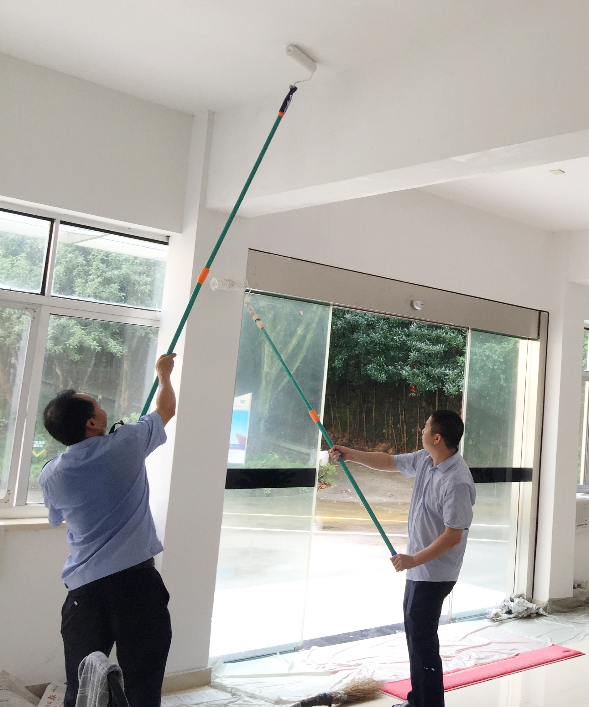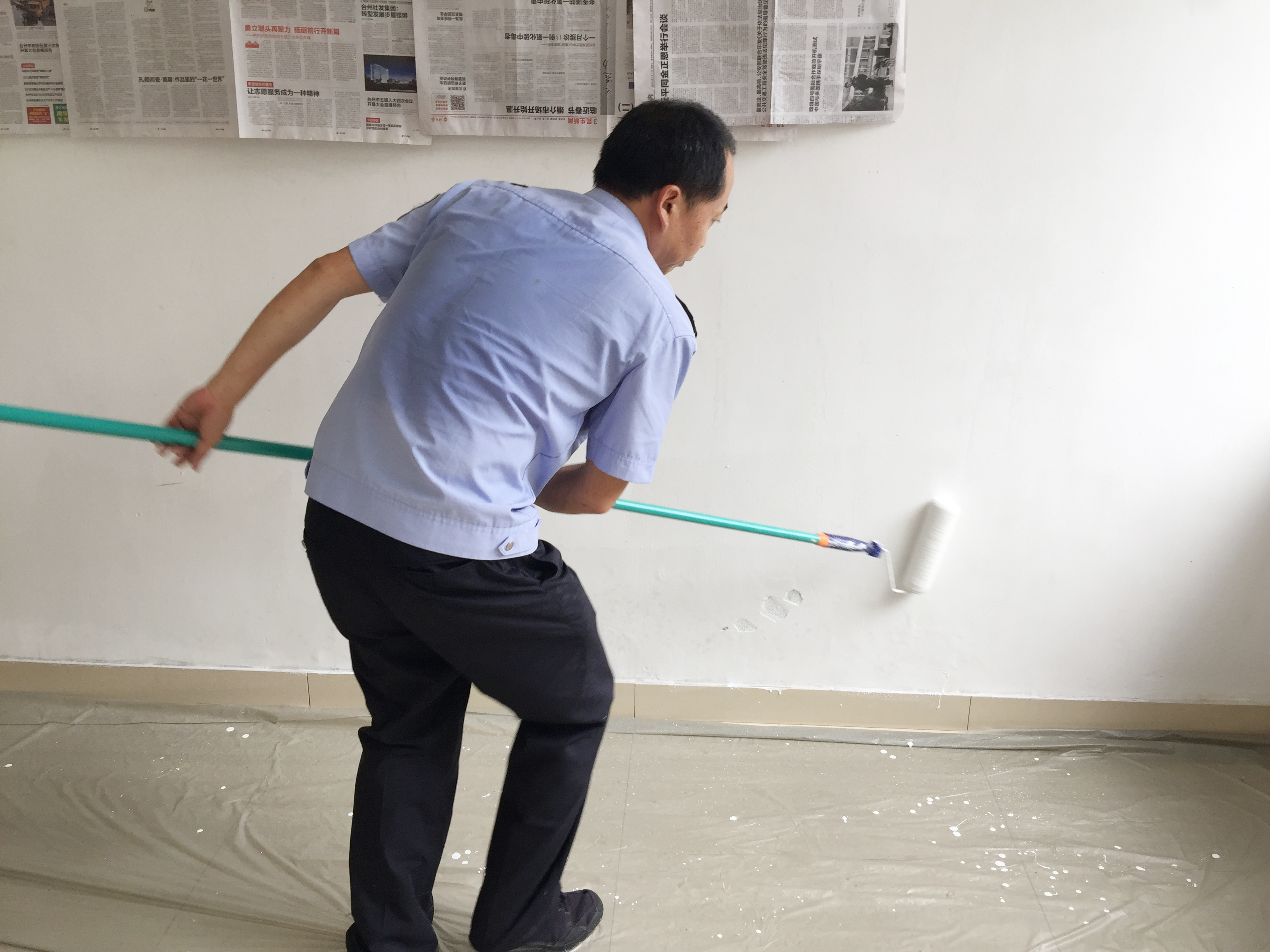 圖為“粉刷匠”粉刷現(xiàn)場 現(xiàn)場,工具備齊后,大家捋起袖子開始動工。家里正在裝修的林通,有著豐富的粉刷經(jīng)驗,指導(dǎo)大家如何將墻體粉刷得平整又美觀。分工明確后,有的拿起粉刷棒,有的攪拌涂料,有的鋪墊報紙及塑料紙,有的清理刷墻后殘留在地面的垃圾。整個勞動過程中,各個動作麻利,干勁十足。粉刷是個技術(shù)活,更是個力氣活,只見浸滿涂料的刷子在墻上揮舞著,個個汗如雨下,卻都顧不得休息,在大家的齊心協(xié)力下,原本一片灰不溜湫的墻壁變得雪白光潔。 這次義務(wù)勞動,不僅美化了站所環(huán)境,營造出廉潔的工作氛圍,增強了員工的凝聚力和向心力,更增加了全體員工對公司的一份熱愛。 林玲