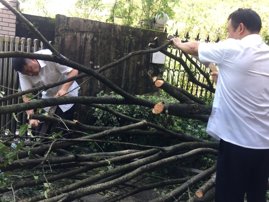 臺(tái)風(fēng)“利奇馬”肆虐而過,雖然黃土嶺隧道所提前做好各項(xiàng)防臺(tái)措施,但是干凈整潔的管理所在這場(chǎng)天災(zāi)中還是遭受到了破壞,樹木倒折、落葉、樹枝滿地,淤泥坑洼,現(xiàn)場(chǎng)一片狼藉。8月12日上午剛剛恢復(fù)正常供水的黃土嶺隧道所,全體人員立馬投入到重建家園中,打掃衛(wèi)生,原地種回倒伏的樹木,清理淤泥……徹底消除臺(tái)風(fēng)過后留下的殘敗痕跡。