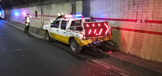 此次事故造成三車追尾,兩名執(zhí)勤隊(duì)員輕微受傷,雖然巡邏車損失慘重,但是因?yàn)?/span>執(zhí)勤隊(duì)員高度的工作責(zé)任心和對(duì)險(xiǎn)情的正確判斷處置,才未造成任何司乘人員的傷亡,也未影響到隧道正常通行。