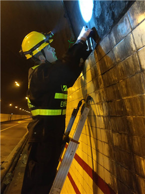 中心工作人員在管理現(xiàn)場安全的同時,主要負責修復(fù)隧道內(nèi)損壞的逃生標志牌、報警電話指示燈、攝像頭等機電設(shè)備。