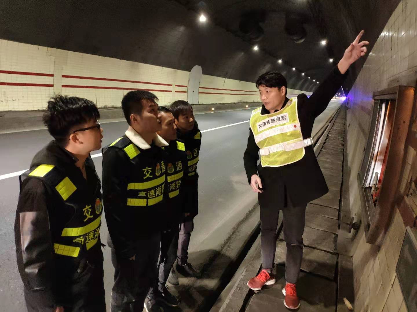 圖為羅鳴春對樂清市高速公路湖霧嶺隧道開發(fā)有限公司駐隧道南邊執(zhí)勤點的幾位新員工進行培訓(xùn) 借此次隧道清洗良機,所長助理羅鳴春對樂清市高速公路湖霧嶺隧道開發(fā)有限公司駐隧道南邊執(zhí)勤點的幾位新員工進行業(yè)務(wù)培訓(xùn),帶他們進入隧道熟悉隧道內(nèi)消防箱、人通、汽通的位置,并告知平時執(zhí)勤時的工作任務(wù),詳細解說了隧道封道、卡口、路面執(zhí)勤、施救的操作流程,希望他們能盡快融入工作,為大溪嶺-湖霧嶺隧道平安暢通貢獻力量。臺溫雙方將持續(xù)合作,共同管理,共同維護好這條隧道。 陳智慧