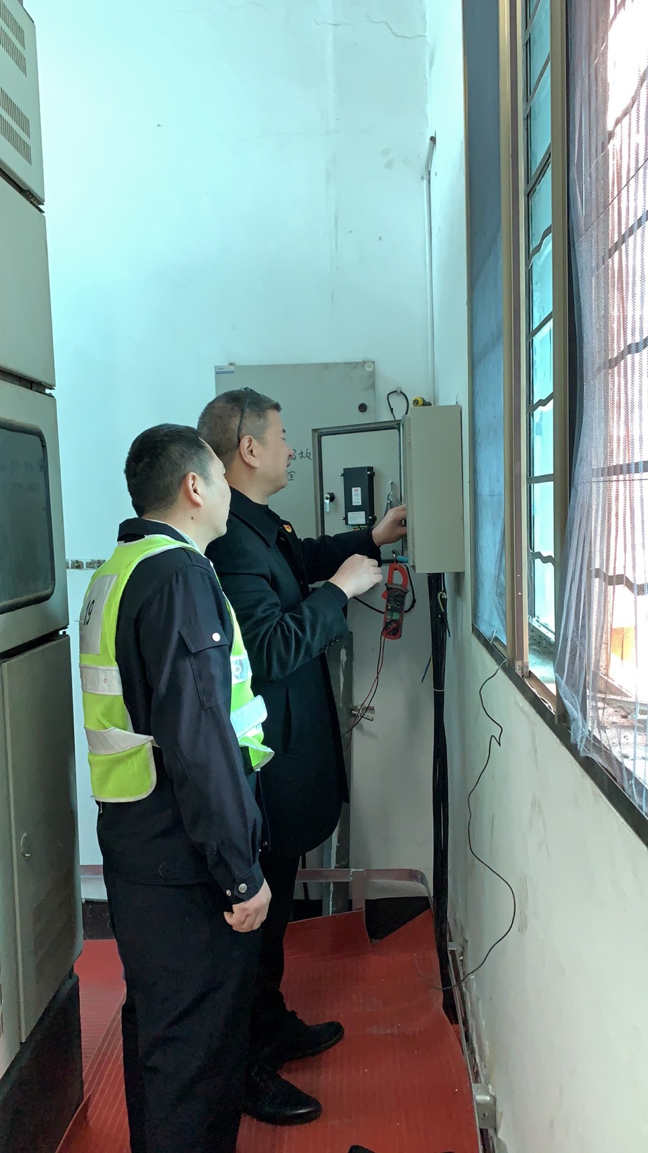 圖為設備設施檢查 當天,該所開始春運專項安全生產(chǎn)大檢查,要求春運期間要加強安全管理和責任,強化監(jiān)督檢查,抓好安全預防。10日,該所又做了一次全面的安全檢查和隱患排查,對隧道兩邊的高邊坡、豎井、高位水池、配電房、隧道內外的各個消防設施等進行重點檢查,及時處理發(fā)現(xiàn)的問題,并做好相應檢修工作。12日,對隧道南廣場的高桿燈進行改造。14日,管理所進行了全面的衛(wèi)生大打除,操場、辦公室、食堂、寢室、衛(wèi)生間的各個角落,逐一進行清理,干凈整潔迎接新年。