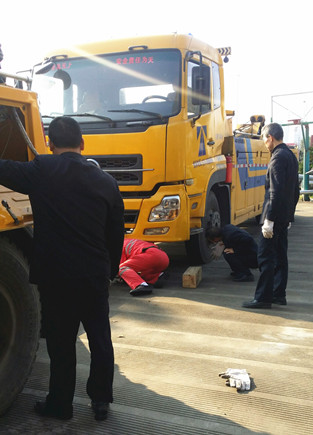 圖為演練現(xiàn)場 廣場上,當指揮員下達“拖車兩次增高作業(yè)演練開始”口令后,拖車在輔助工的引導下,駕駛員將拖車緩緩地倒到故障車的前面,停穩(wěn)后,輔助工立馬從工具箱里拿出托叉、方木等附件,將托叉插入托叉座,調(diào)整好位置,駕駛員操縱操作手柄進行第一次托舉鋼板作業(yè)。當抬高一定高度后,輔助工將方木填在前輪胎下面,然后放下托臂,重新調(diào)整好位置,進行第二次托舉工字梁作業(yè),直到達到安全高度,輔助工才抽出方木,駕駛員迅速將故障車拖離現(xiàn)場。兩次增高作業(yè)順利完成,演練達到了預期效果。 演練現(xiàn)場,氣氛熱烈,員工們針對復雜車型和去年拖車過程中發(fā)生的事故案例,相互探討,并紛紛表示在今后的工作過程中,要根據(jù)車型的實際情況,掌握各種作業(yè)技巧,同時要吸取事故教訓,增強安全意識,確保作業(yè)安全。 何先林