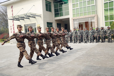 圖為黨員干部在進(jìn)行隊列訓(xùn)練