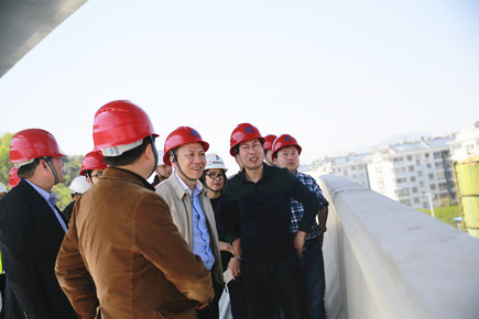 圖為公司總經(jīng)理張建平在8#立交橋上了解相關(guān)工程情況