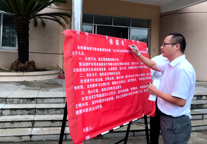 會(huì)議向全體臺(tái)州收費(fèi)所(浦西)區(qū)域內(nèi)的員工發(fā)出倡議:號(hào)召大家做文明市民,樹(shù)文明新風(fēng),為創(chuàng)建全國(guó)文明城市貢獻(xiàn)力量,擔(dān)當(dāng)起應(yīng)有的責(zé)任。隨后,與會(huì)人員紛紛在“承諾書”上簽名,區(qū)域內(nèi)各單位部門立即對(duì)周邊環(huán)境衛(wèi)生進(jìn)行全方面檢查整治。
