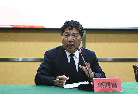 圖為集團(tuán)黨委副書記、總經(jīng)理張建平對學(xué)習(xí)領(lǐng)會(huì)落實(shí)黨的十九大精神進(jìn)行全面部署