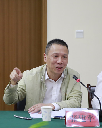 圖為集團黨委副書記、副董事長、總經(jīng)理張建平介紹集團相關情況