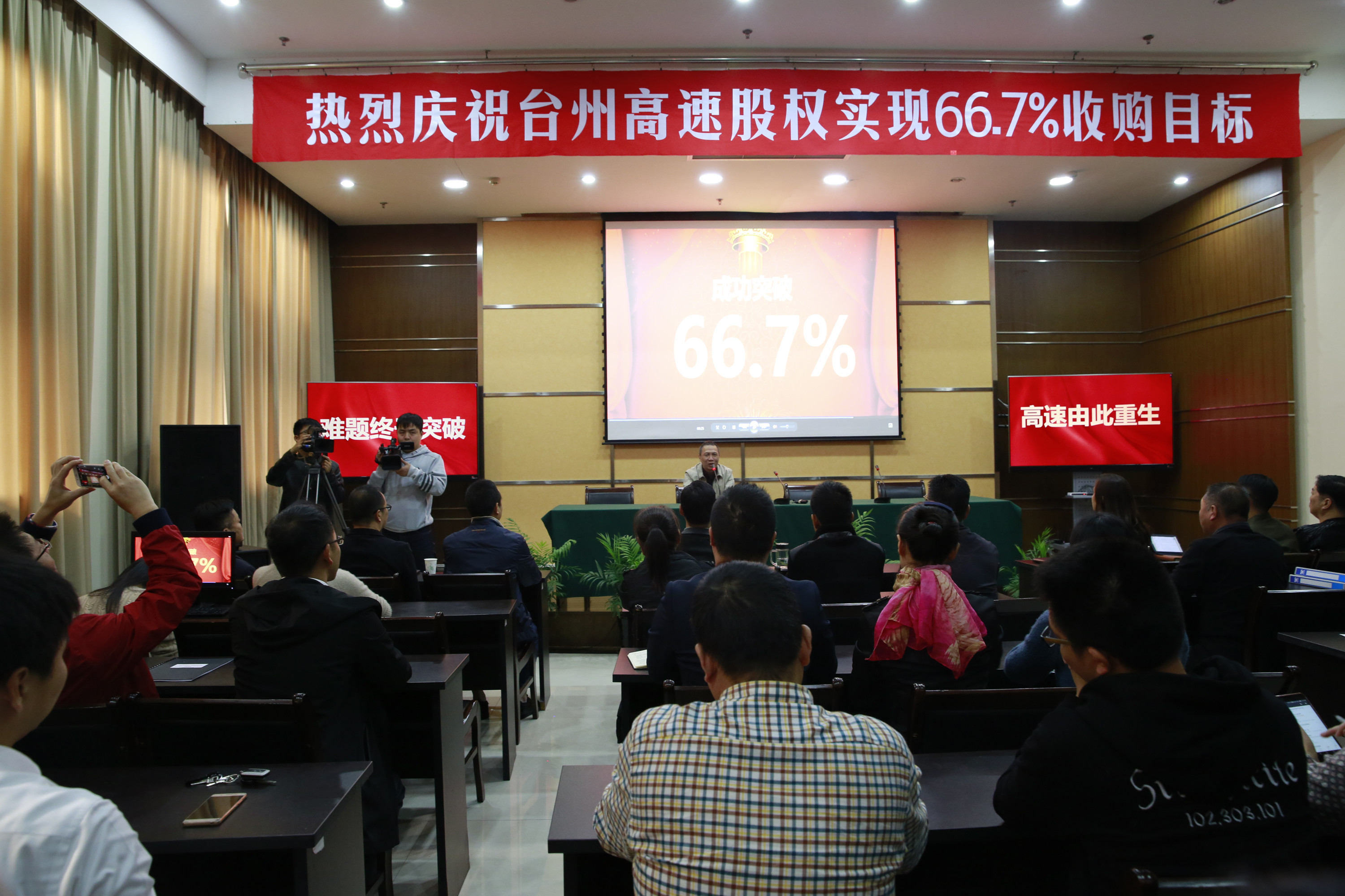 臺(tái)州高速股權(quán)集中和優(yōu)化工作領(lǐng)導(dǎo)小組辦公室主任、臺(tái)州高速集團(tuán)總經(jīng)理張建平鄭重地宣布:“至此,全市共完成臺(tái)州高速股權(quán)轉(zhuǎn)讓6947萬股,臺(tái)州市屬國企及黃巖財(cái)務(wù)開發(fā)公司合計(jì)持股數(shù)1.441億股,完成了66.7%的預(yù)定收購目標(biāo)?!?/span>