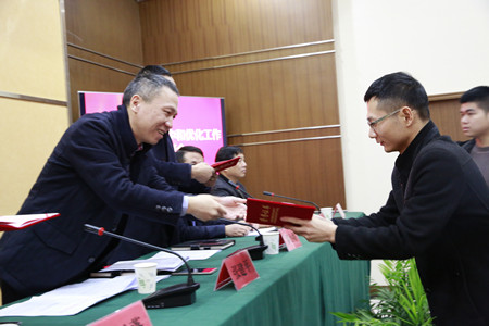 圖為集團總經(jīng)理張建平給先進個人頒發(fā)獎狀