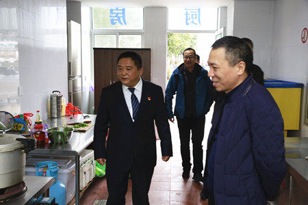 圖為集團(tuán)副董事長(zhǎng)、總經(jīng)理張建平檢查臺(tái)州南收費(fèi)所食堂
