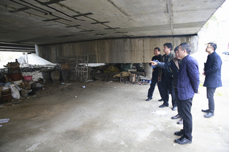 圖為集團(tuán)副董事長、總經(jīng)理張建平在院橋互通下檢查