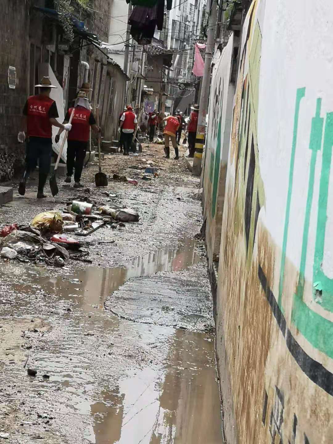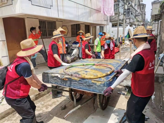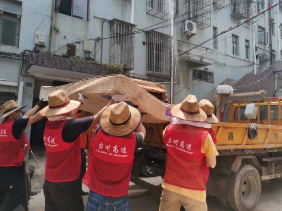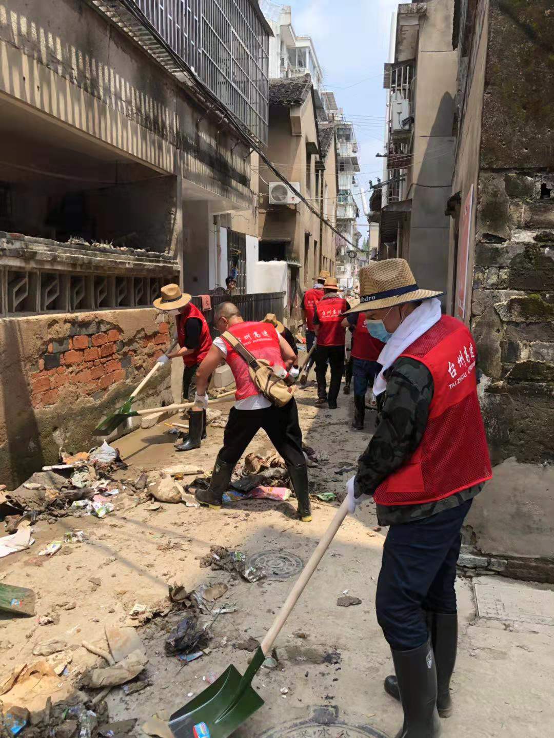圖為臺(tái)州高速志愿者支援災(zāi)區(qū)重建現(xiàn)場 在臨海古城赤城路米篩巷,臺(tái)州高速集團(tuán)的志愿者們頂著毒辣的太陽,不怕臟不怕累,積極為災(zāi)后重建貢獻(xiàn)力量,清理路面淤泥、垃圾,保障路面清潔以及道路順暢。 真情傳遞溫暖 愛心匯聚力量, 面對(duì)災(zāi)后重建, 臺(tái)州高速集團(tuán)用實(shí)際行動(dòng), 彰顯鐵軍精神, 承擔(dān)社會(huì)責(zé)任, 展現(xiàn)使命擔(dān)當(dāng)。