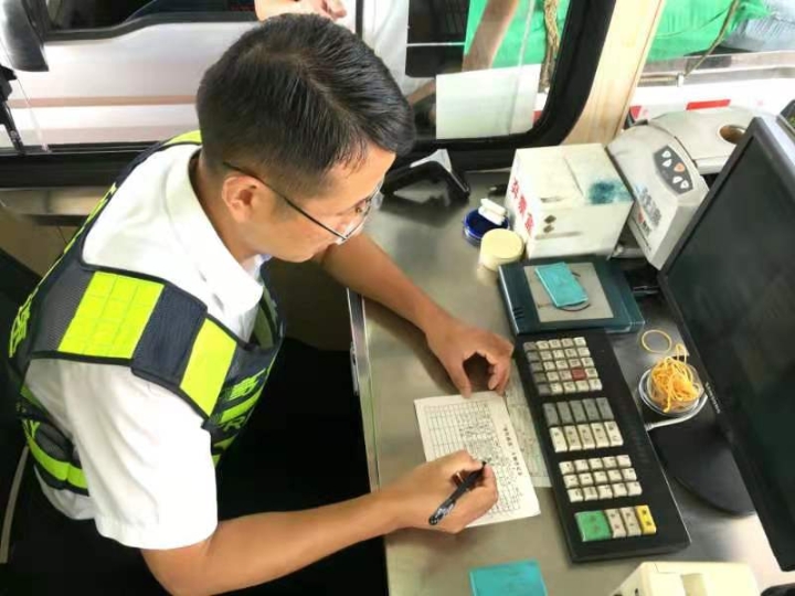而在對(duì)面發(fā)卡的安全總監(jiān)項(xiàng)同富正襟危坐,等待著車子的駛?cè)耄?/span>“記住動(dòng)作就忘記微笑,笑起來又忘記要說什么......真有點(diǎn)手忙腳亂的,做好收費(fèi)員,不容易?!?/span>