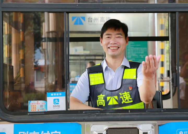 “我再試試,我這個(gè)微笑還標(biāo)準(zhǔn)嗎?”正在臨海南收費(fèi)所二號(hào)收費(fèi)崗?fù)だ锸召M(fèi)的集團(tuán)副總經(jīng)理陳保衛(wèi)認(rèn)真做著收費(fèi)的規(guī)范動(dòng)作微笑示意。