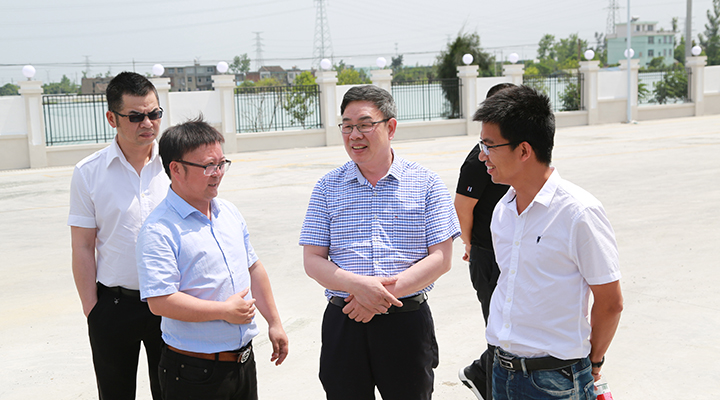 圖為陳文波一行在山海公司瀝青拌合站現(xiàn)場調(diào)研