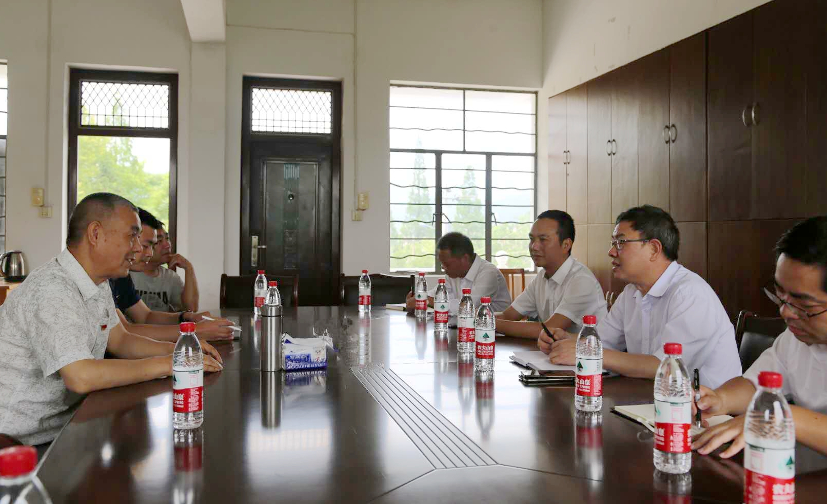 圖為陳文波與村兩委班子以及駐村指導員座談交流 在塘上村的村委會會議室里,陳文波與村兩委班子以及駐村指導員進行座談交流。塘上村村支書、村長,以及其他村干部分別向陳文波等介紹了村里近期的基礎設施建設、村民生產生活、產業(yè)扶貧措施、文化禮堂建設等工作中的重點難點問題,同時代表村民感謝臺州高速集團長期以來對塘上村的支持和幫助。