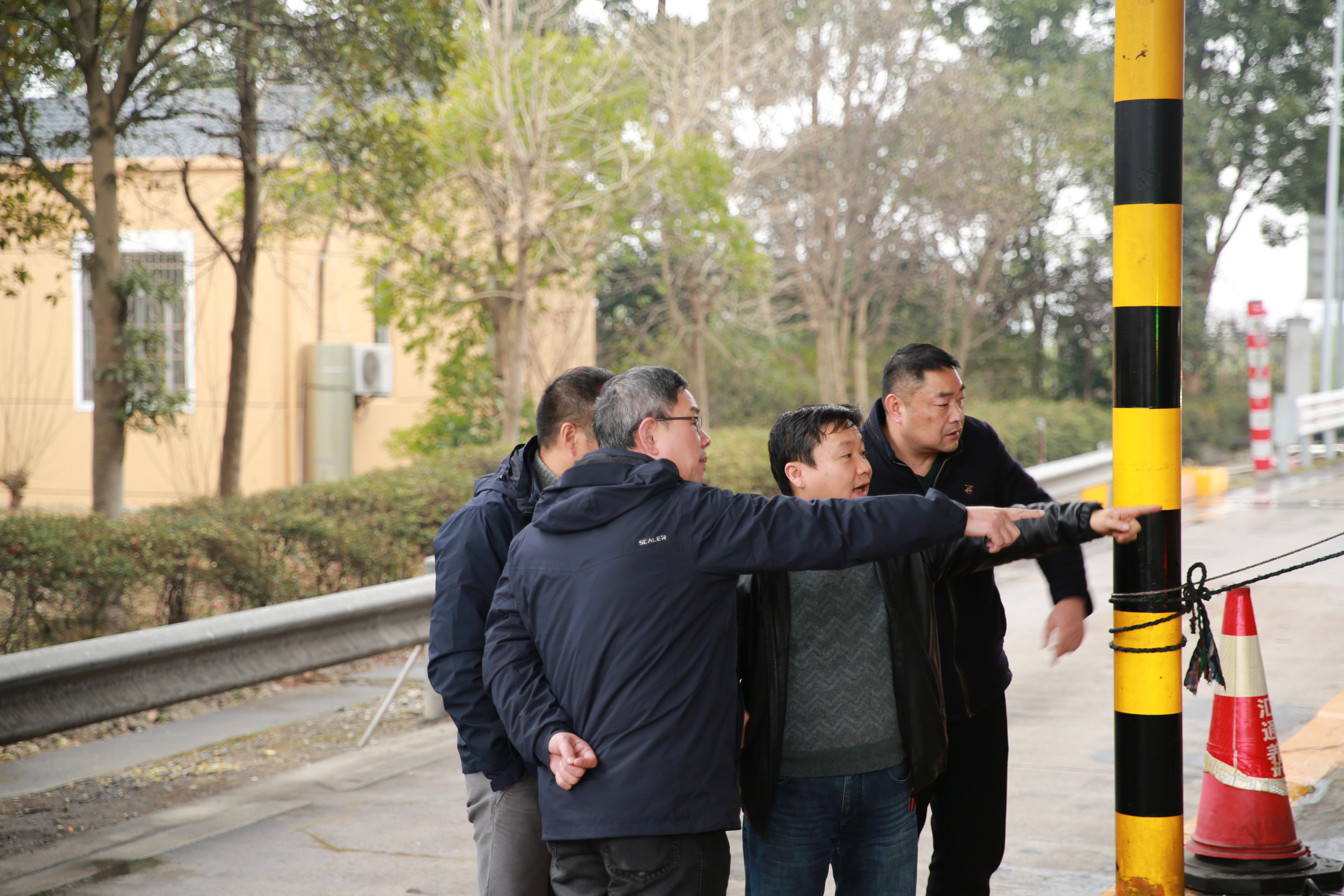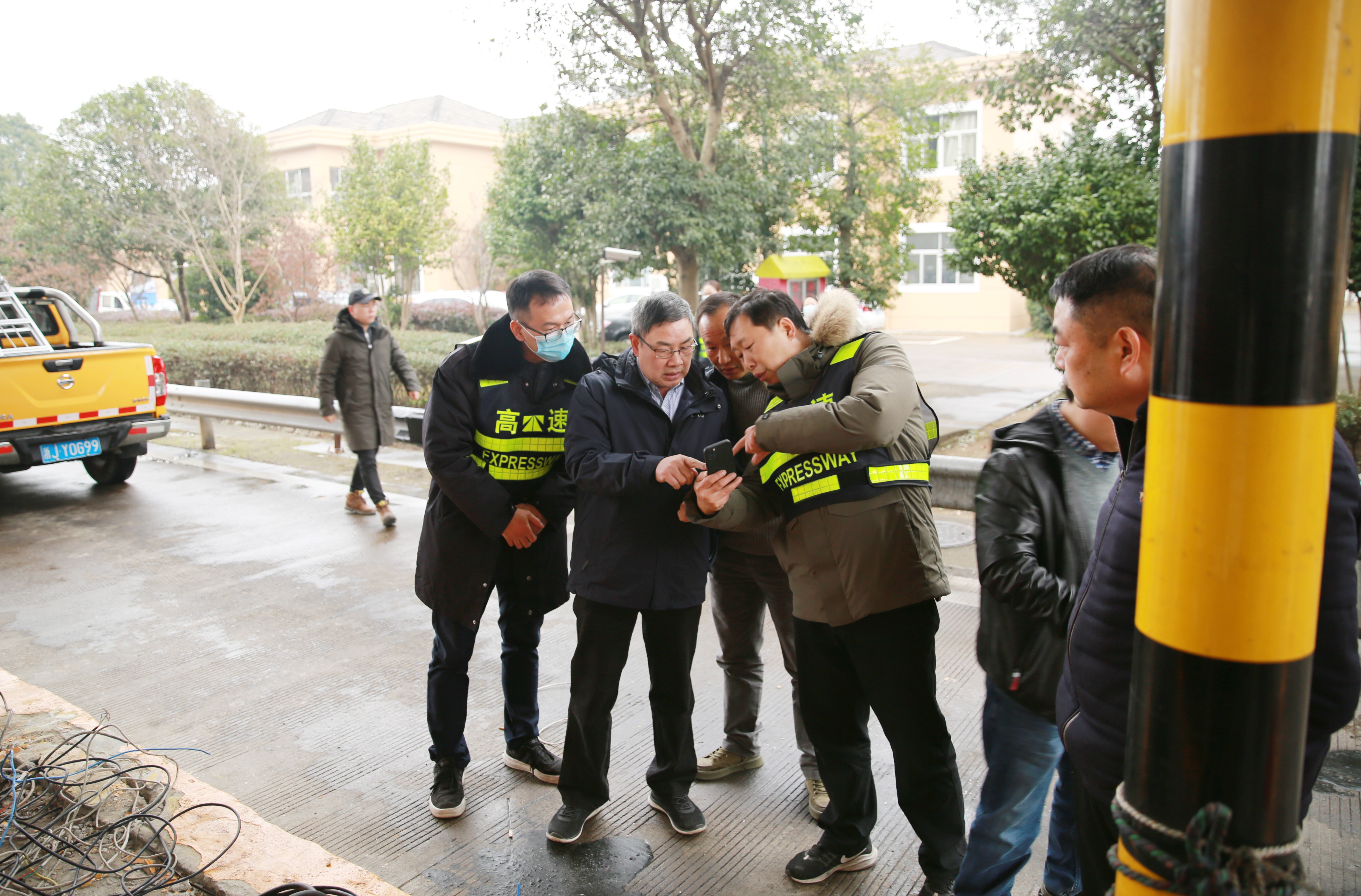 1月20日下午,臺(tái)州高速集團(tuán)黨委書記、董事長(zhǎng)、總經(jīng)理陳文波趕往臨海南收費(fèi)所,現(xiàn)場(chǎng)指導(dǎo)1月19日深夜大貨車撞倒收費(fèi)崗?fù)さ暮罄m(xù)維修工作。集團(tuán)副總經(jīng)理章海峰,工程養(yǎng)護(hù)部、安保部負(fù)責(zé)人陪同。 事發(fā)現(xiàn)場(chǎng),各種破損之物于昨晚深夜就已被清理干凈,被撞的1號(hào)崗?fù)の恢弥皇O侣懵兜母鞣N電線,以及被截?cái)嗟姆雷仓j愇牟ㄟ叢榭船F(xiàn)場(chǎng)情況,邊同維養(yǎng)技術(shù)人員就如何加強(qiáng)收費(fèi)崗?fù)ぐ踩禂?shù)展開商討,并提出有關(guān)建議。