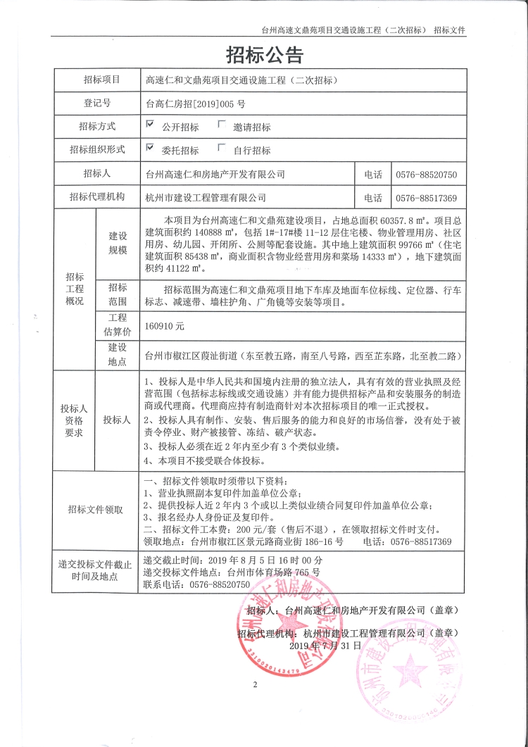 高速仁和文鼎苑項(xiàng)目交通設(shè)施工程招標(biāo)公告