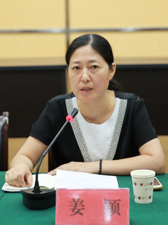 圖為市國資委副主任姜穎在會(huì)上作迎新講話