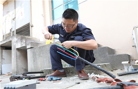 此次比賽項(xiàng)目是空氣斷路器三相四線電纜連接,要求參賽者在規(guī)定時(shí)間內(nèi),利用液壓鉗、電工刀等工具將一根長(zhǎng)度約50cm,橫截面積為25平方毫米電纜套接銅鼻子,并連接空氣斷路器后模擬送電??此埔粓?chǎng)比較簡(jiǎn)單的比賽,但里面涉及到的知識(shí)點(diǎn)卻不少,包括配送電操作流程、電纜線連接順序、液壓鉗使用技巧等等。接電纜,安全送電,這也是平時(shí)工作中經(jīng)常會(huì)碰到的問題。