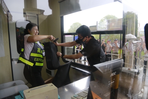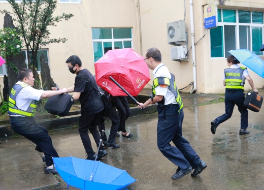 隨后,多名參演員工冒雨模擬收費(fèi)崗?fù)ず土嘘?duì)下崗遭遇“歹徒”搶劫的情景開展防盜搶演練?,F(xiàn)場(chǎng),2名蒙面歹徒執(zhí)仿真刀、軟棍威脅收費(fèi)員交出現(xiàn)金,危機(jī)之中,收費(fèi)站立即啟動(dòng)應(yīng)急處置預(yù)案并報(bào)警求助,收費(fèi)員有效與歹徒周旋,應(yīng)急處置組人員迅速攜鋼叉、橡膠棒、勞動(dòng)工具等赴現(xiàn)場(chǎng)支援,值班領(lǐng)導(dǎo)、收費(fèi)班長、監(jiān)控員合力協(xié)作應(yīng)對(duì)歹徒,防盜搶演練順利結(jié)束。