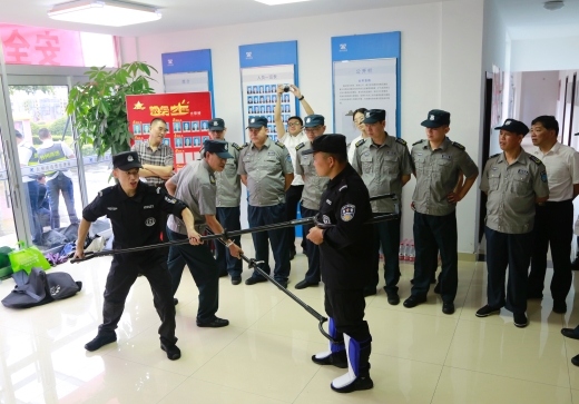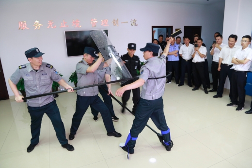 圖為物業(yè)人員現(xiàn)場(chǎng)練習(xí)器械使用