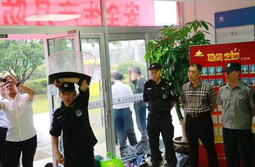 演練開始前,盧尚明對(duì)防爆盾牌、防爆鋼叉、抓捕器、警棍等各類防爆器材的功能和使用方法進(jìn)行一一講解,并示范操作,以及帶領(lǐng)大樓浙師大印象物業(yè)人員現(xiàn)場(chǎng)練習(xí)器械使用。