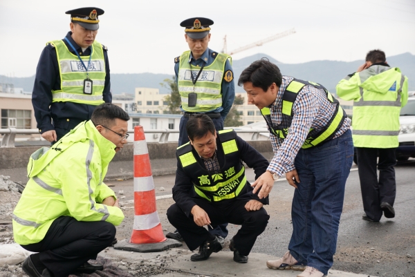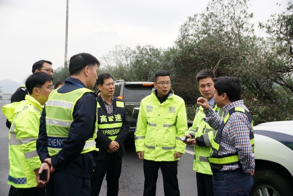 集團(tuán)聯(lián)合高速交警、路政檢查第一階段斷流施工情況 11月7日上午,集團(tuán)聯(lián)合高速交警、高速路政等單位實(shí)地踏勘了集團(tuán)沿線斷流施工現(xiàn)場,檢查第一階段施工進(jìn)展情況及現(xiàn)場交通管控點(diǎn)、收費(fèi)站分流點(diǎn)交通流等情況,集團(tuán)總工程師江輝、高速交警臺州支隊(duì)副支隊(duì)長沈汝寬、高速路政領(lǐng)導(dǎo)參加檢查。