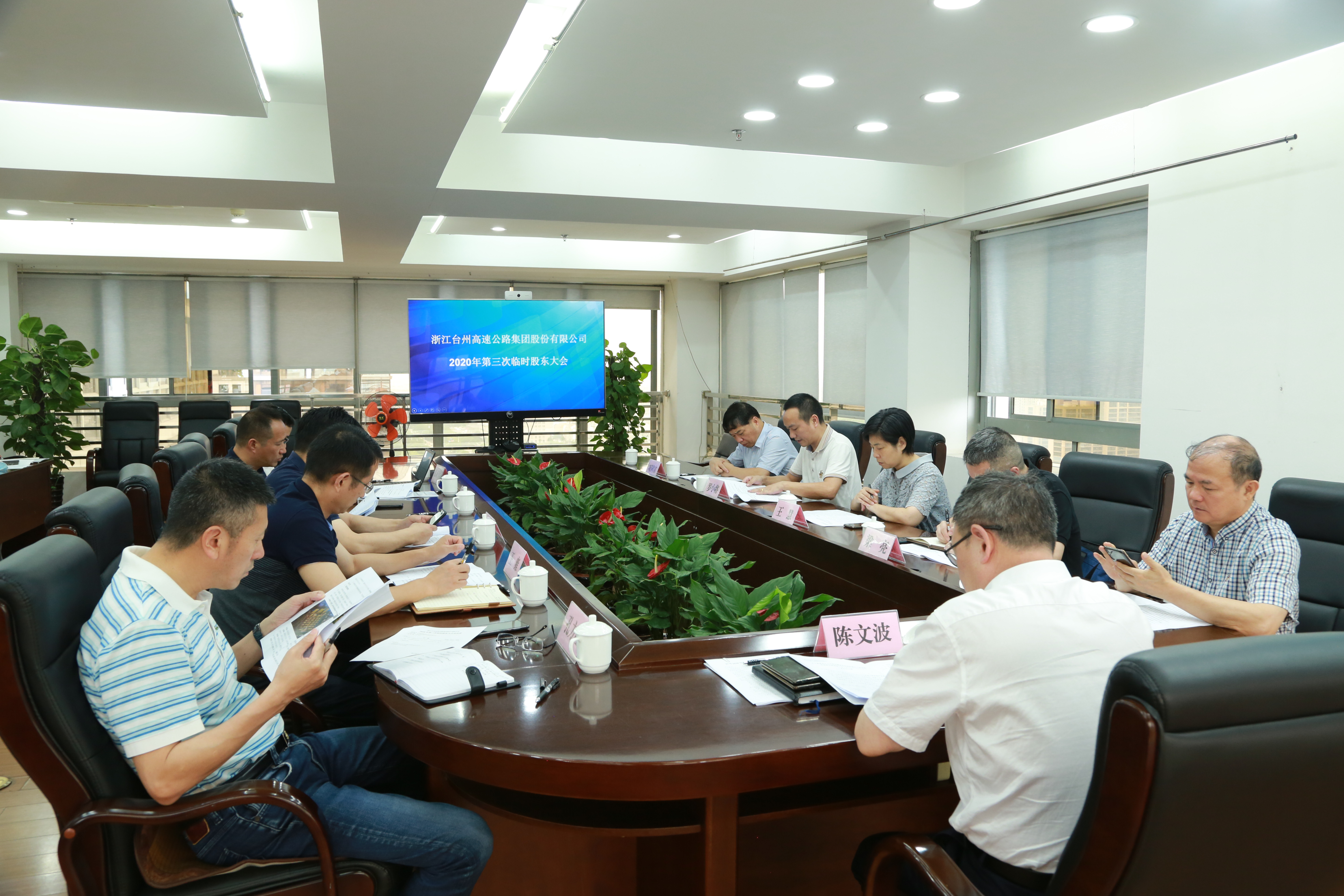 圖為陳文波主持會議 大會由公司黨委書記、董事長、總經(jīng)理陳文波主持,公司董事、監(jiān)事和高管人員出席大會。 大會經(jīng)鼓掌表決推舉了監(jiān)票人、計(jì)票人,經(jīng)記名投票表決通過《關(guān)于高速房產(chǎn)公司參與黃巖區(qū)東城街道印山路西側(cè)、二環(huán)南路北側(cè)地塊(臺土告字[2020]028號)競拍的議案》。本次股東大會各項(xiàng)議案均獲通過,同意各項(xiàng)議案的表決股數(shù)占出席會議所有股東所持表決權(quán)的100%。