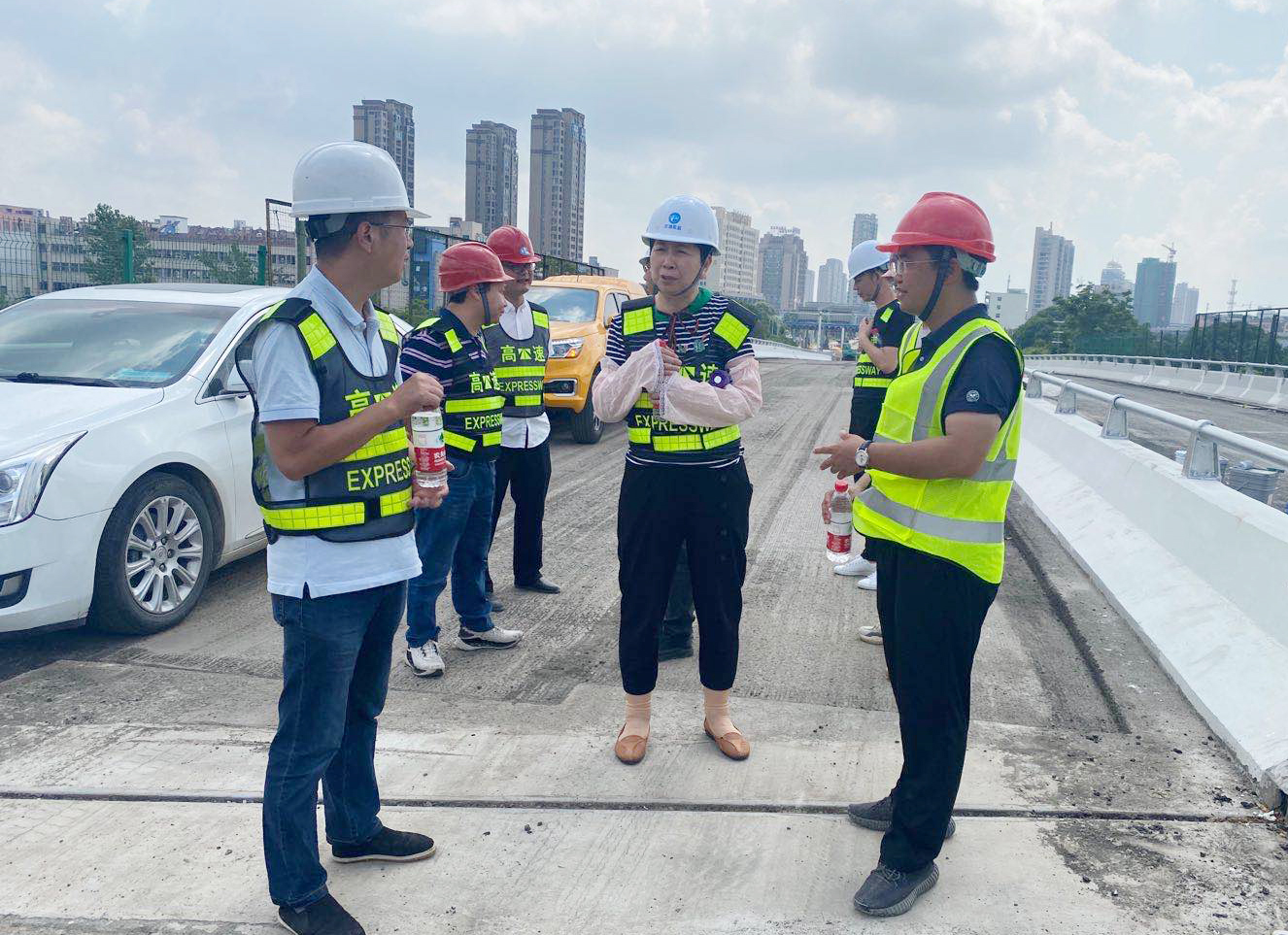 臺州市交通工程質(zhì)量安全監(jiān)督站一行督查公司路段施工 8月21日,臺州市交通工程質(zhì)量安全監(jiān)督站副站長柯善剛,副總工程師羅衛(wèi)萍一行到公司所轄路段施工現(xiàn)場督察,查看施工質(zhì)量、安全以及進展情況。工程養(yǎng)護部、施工單位、監(jiān)理單位等人員陪同。