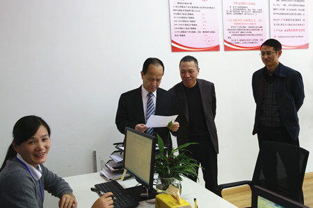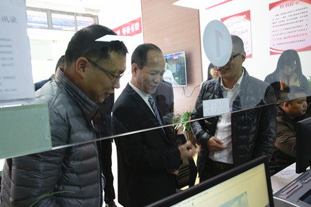 圖為副市長張加波在窗口查看股東股權(quán)轉(zhuǎn)讓情況