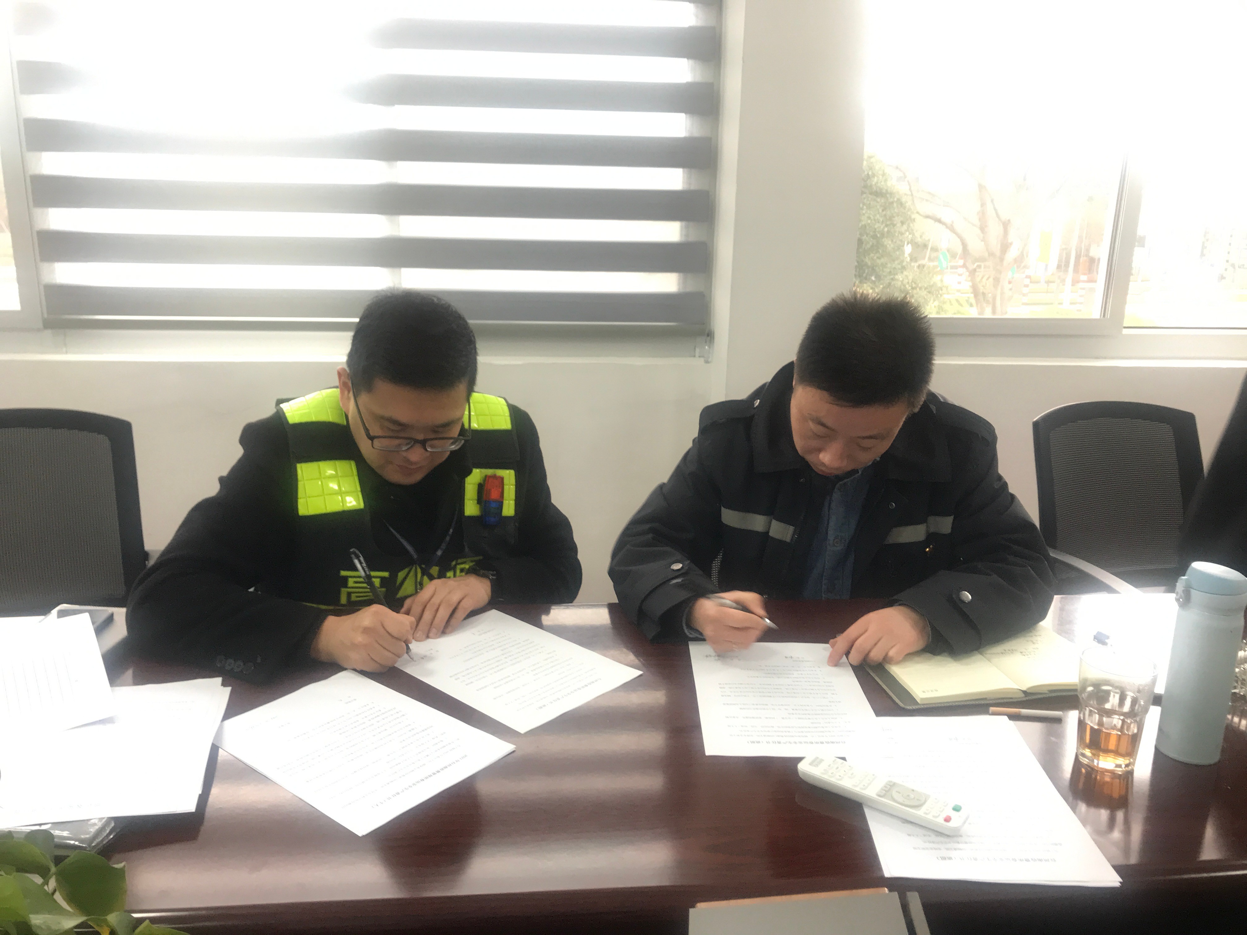 (圖為所長與班長簽訂春運(yùn)安全生產(chǎn)責(zé)任書 )