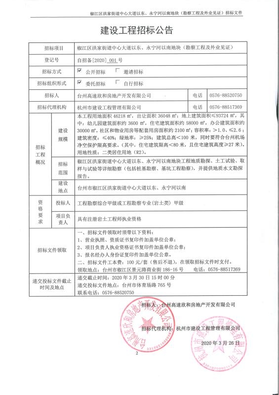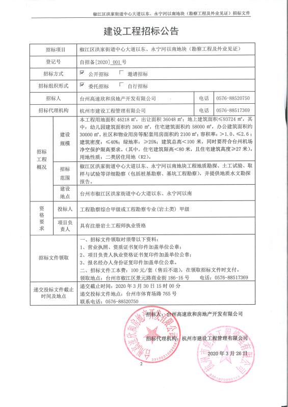 椒江區(qū)洪家街道中心大道以東、永寧河以南地塊(勘察工程及外業(yè)見(jiàn)證)工程招標(biāo)公告