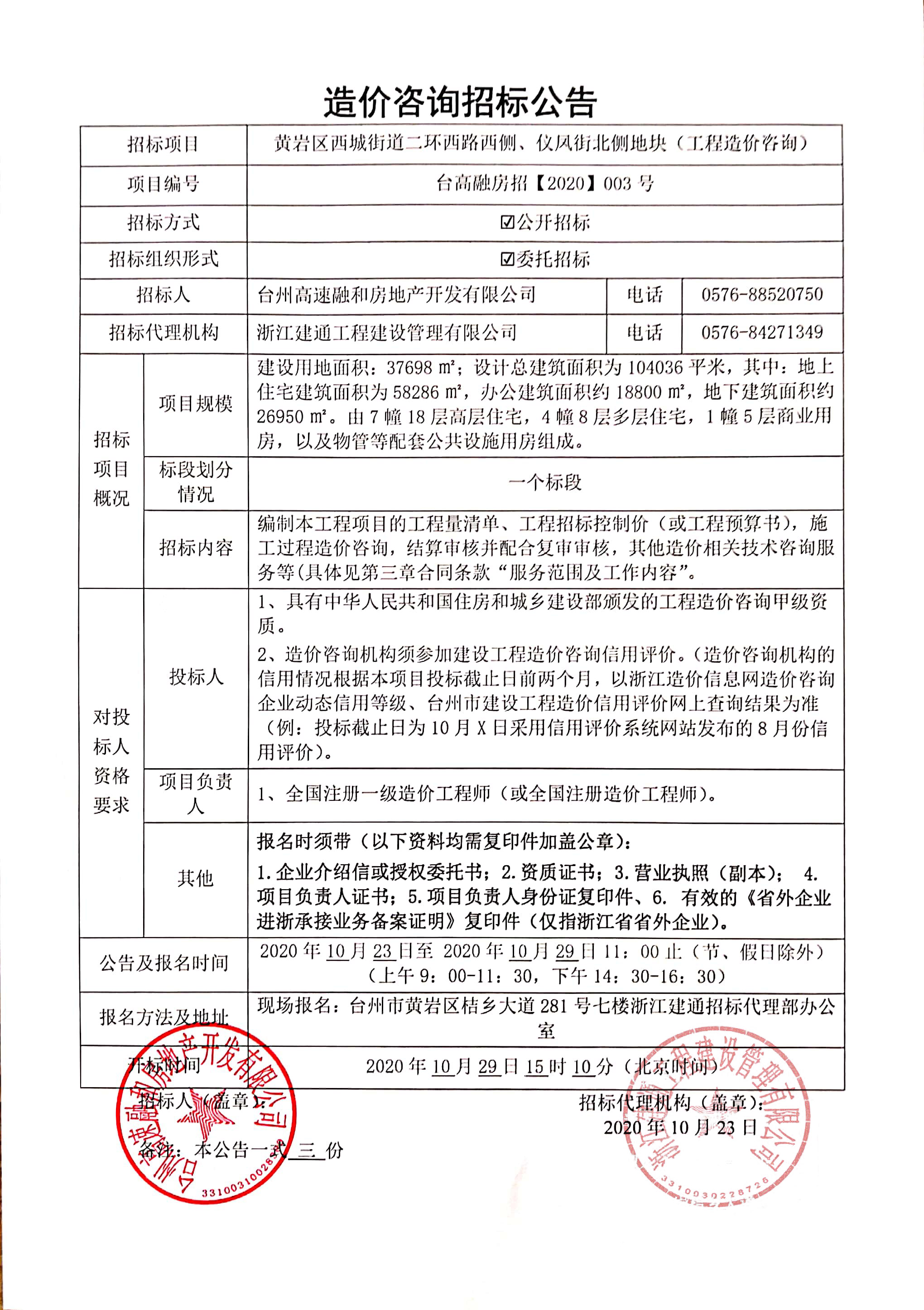 黃巖區(qū)西城街道二環(huán)西路西側(cè)、儀鳳街北側(cè)地塊(工程造價(jià)咨詢)招標(biāo)公告