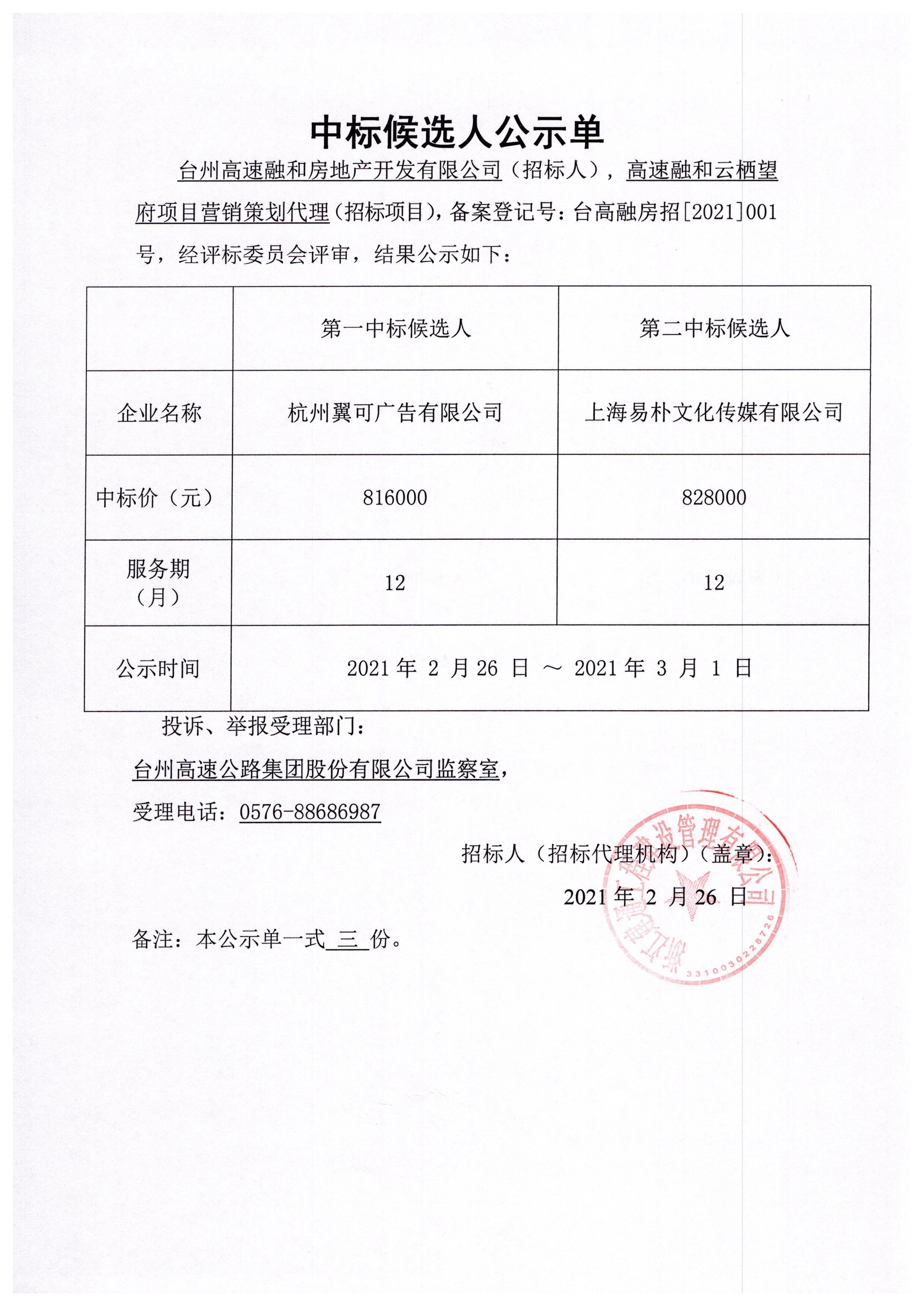 高速融和云棲望府項目營銷策劃代理中標候選人公示